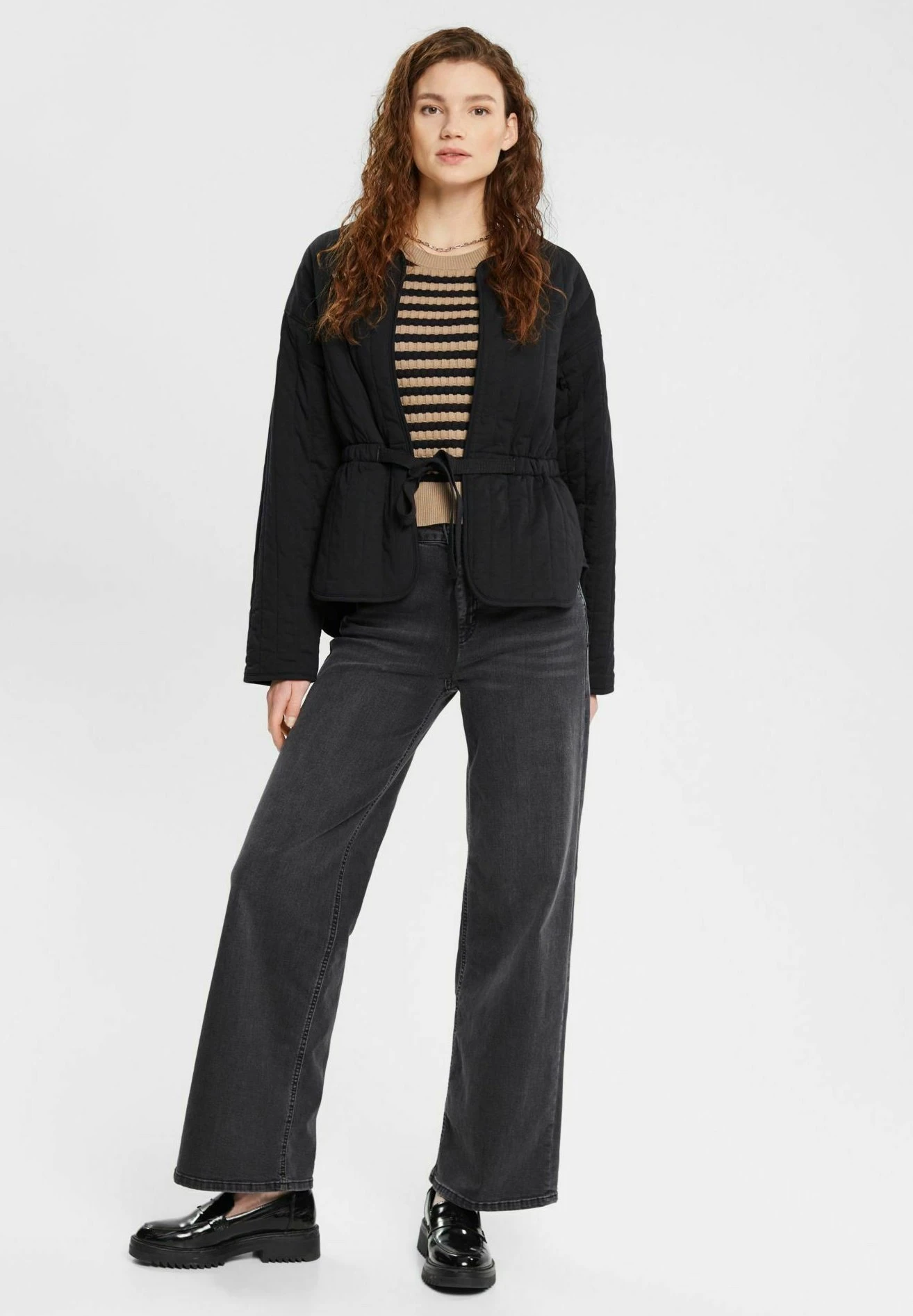 ESPRIT Gestreifter Mit Verkürzten Ärmeln – T-Shirt Print – Taupe