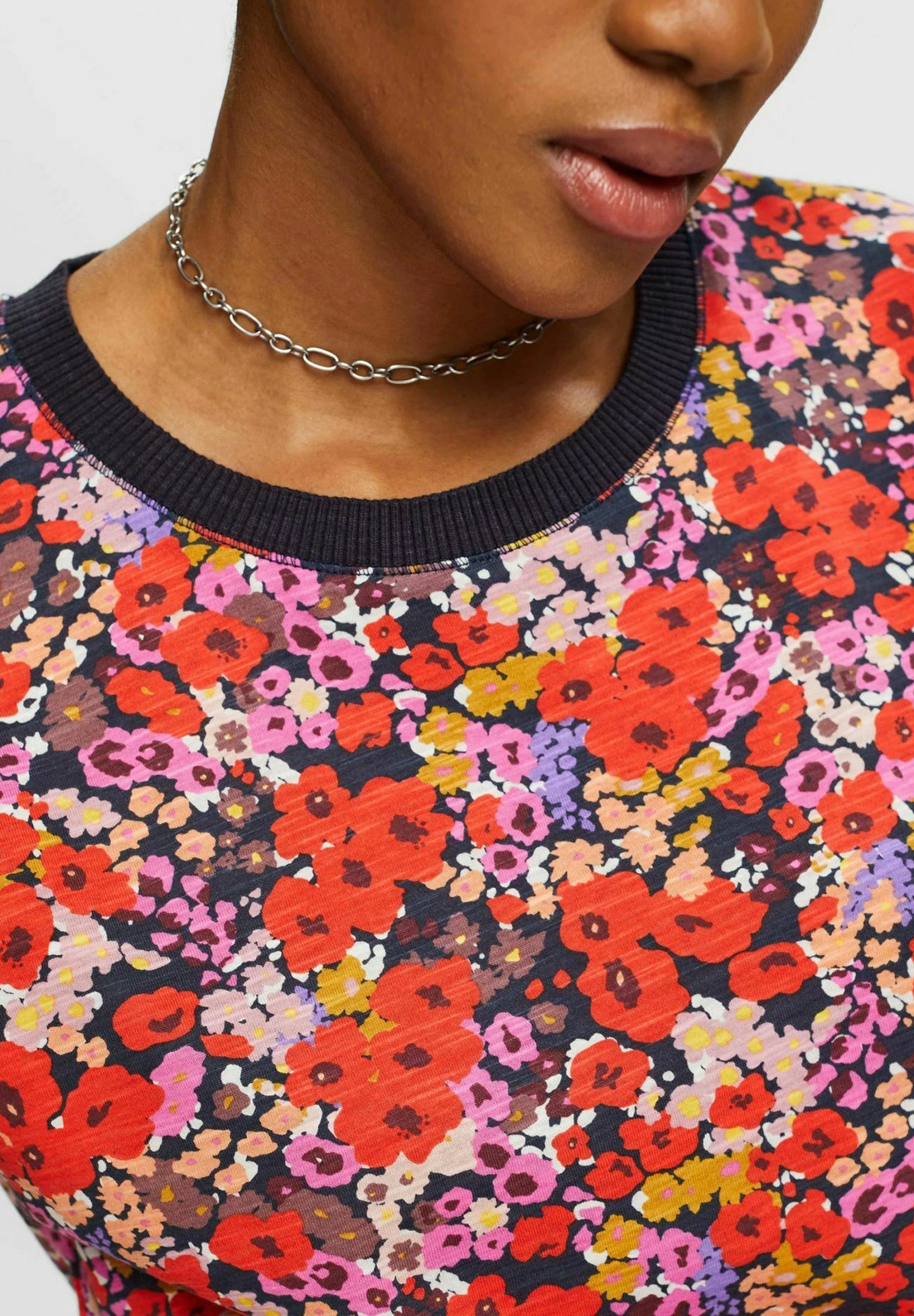 ESPRIT Mit Floralem Allover-Muster – T-Shirt Print – Navy