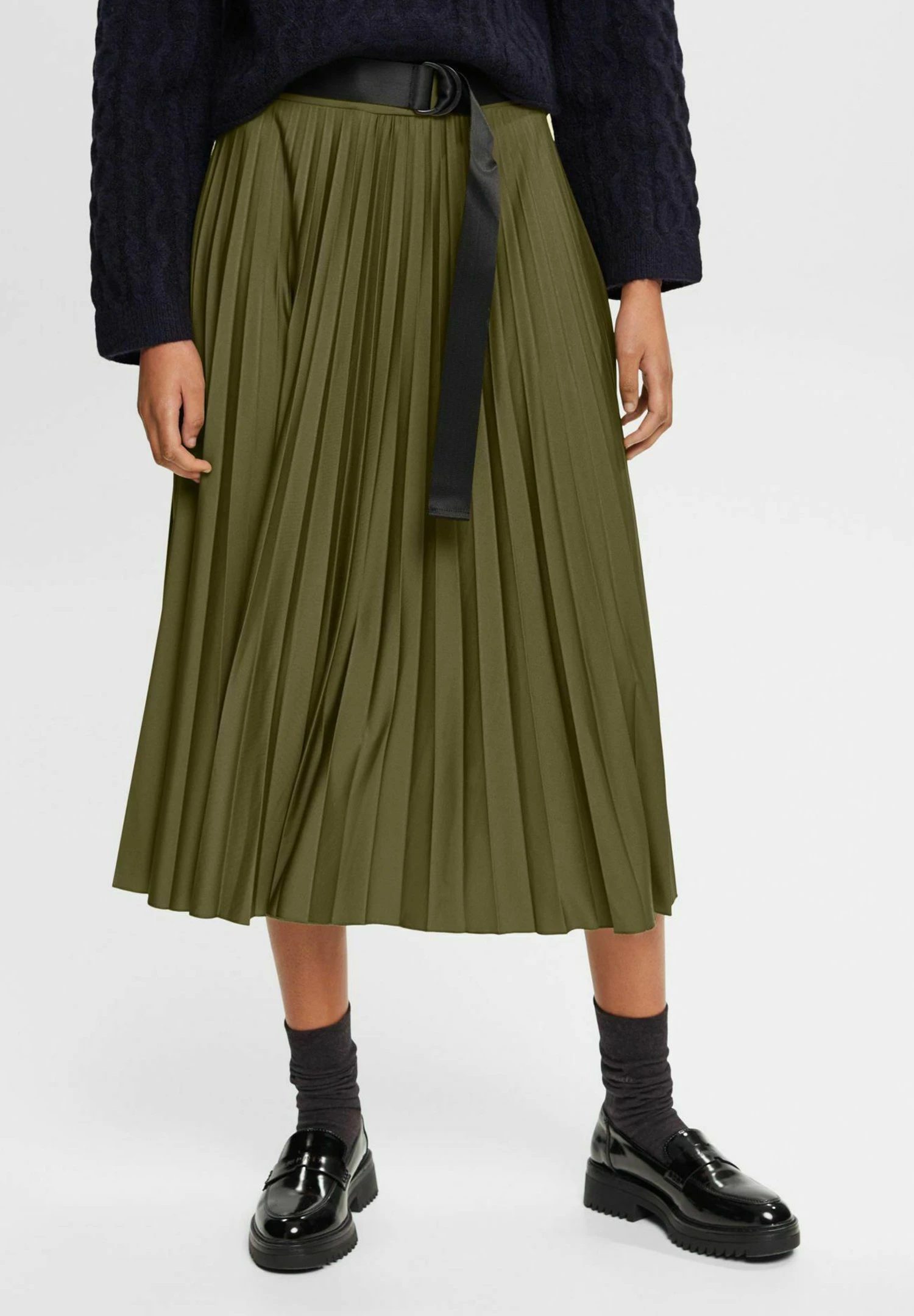 ESPRIT Mit Gürtel – A-Lijn Rok – Dark Khaki