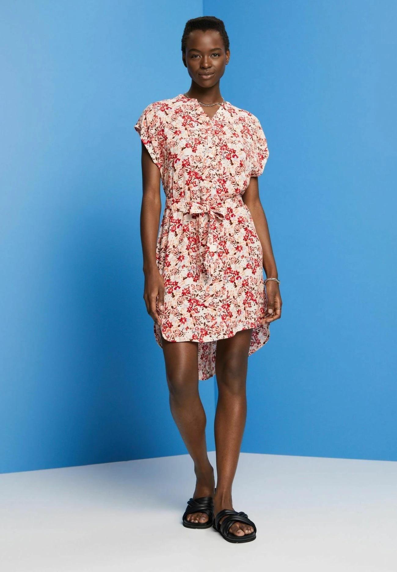 ESPRIT Mit Gürtel Und Crêpe-Effekt – Jurk – Light Pink